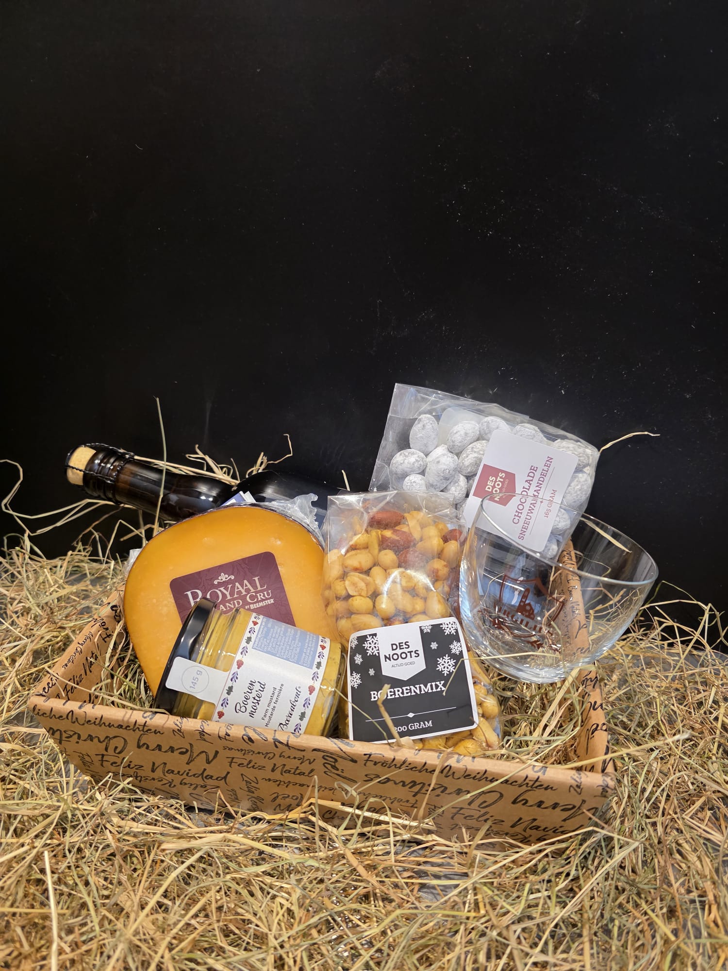 Een Beemsterkaasje, lokaal biertje, nootjes, stevige mosterd, amandelen en een bierglas. Meer heb je toch niet nodig om gezellig te borrelen?
